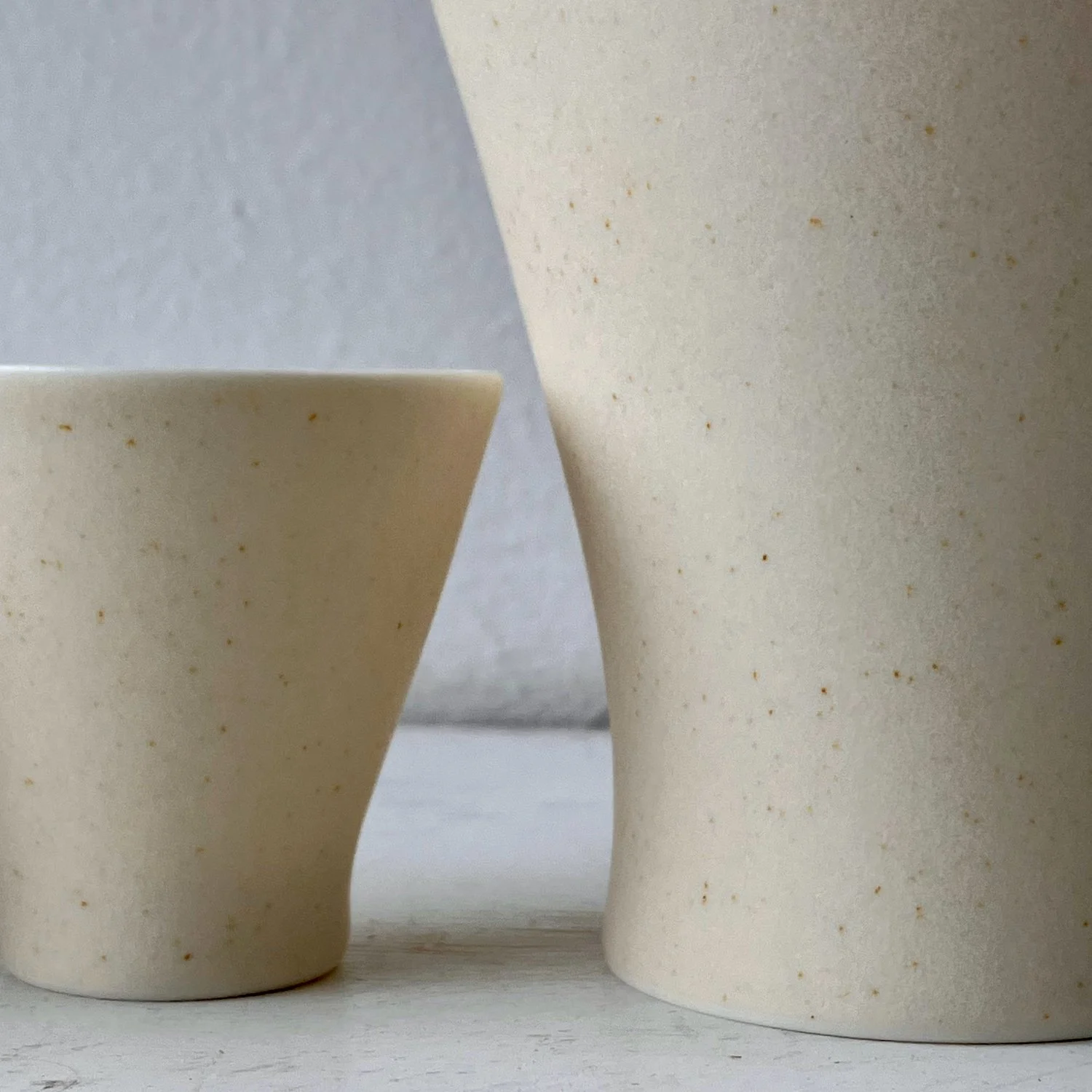 The inspirations for the project came about, through correspondences between me and Geoff, about questioning functionality of an object. Also, his suggestion of making a cup with a hole, resonated with my memory of my hometown of Kochi, in Japan. Such a cup already exists there, a vessel for drinking sake (fermented alcohol made of rice). It is called ‘beku-hai’, which means, a cup one can not put down. Once the sake is poured, you have to finish drinking while closing the hole with a finger.